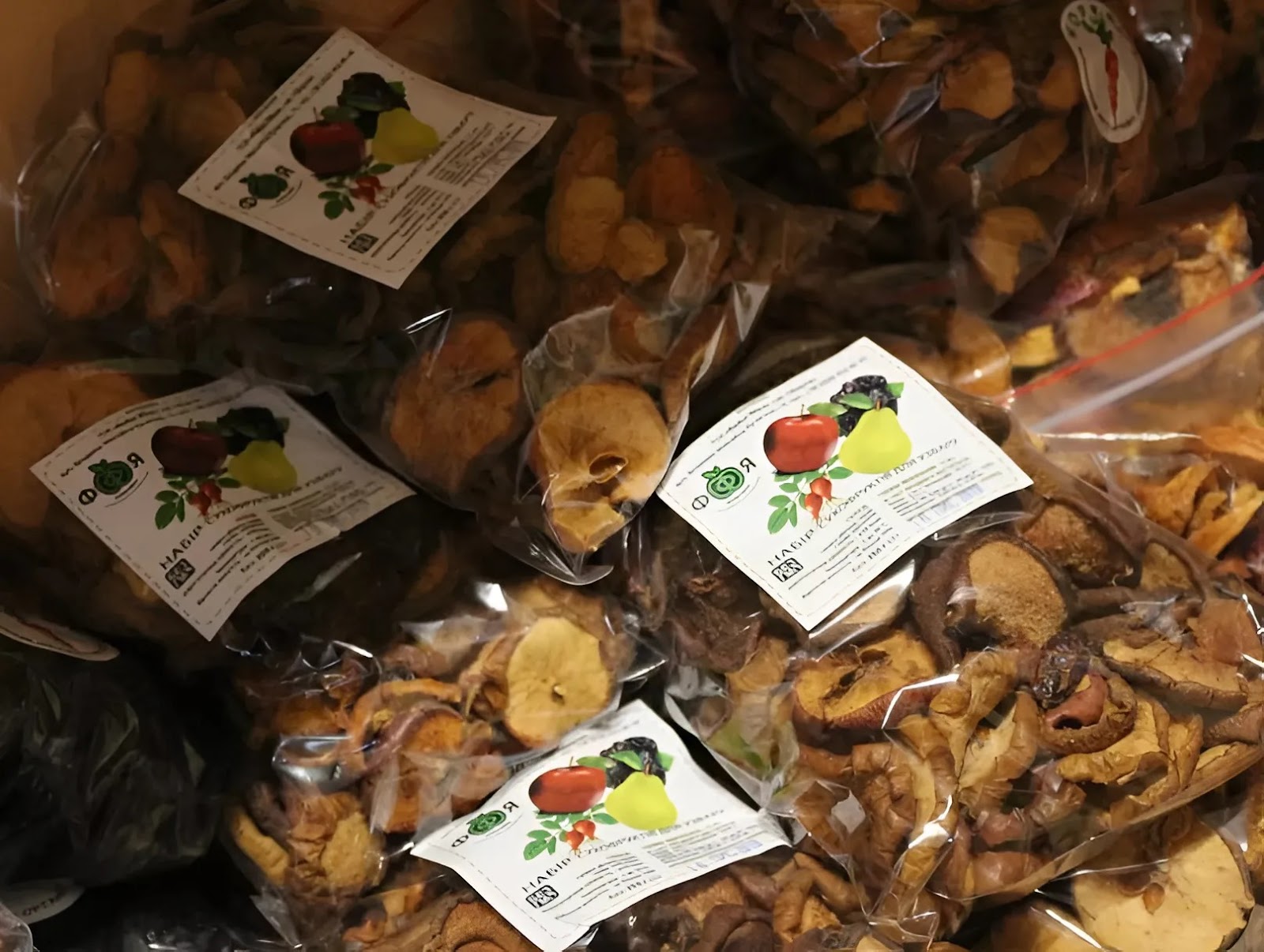 Начиналось все с сушки яблок, впоследствии начали использовать и другие фрукты и ягоды. Сейчас ассортимент компании поражает своим разнообразием: это и ароматные наборы сухофруктов, мука (из груш, яблок и шиповника), разнообразная овощная консервация, замороженная перетертая облепиха и земляника, хрустящие чипсы (из яблок, земляники и помидоров) и многое другое.