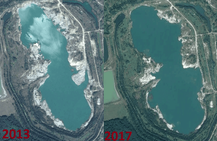 Вирва кар’єру почала заповнюватись водою, оскільки дренажні системи більше не працювали. Особливо “багатоводними” були 2008-2010 роки через часті та активні опади. Тоді ж річка Сівка прорвала північний борт кар’єру.