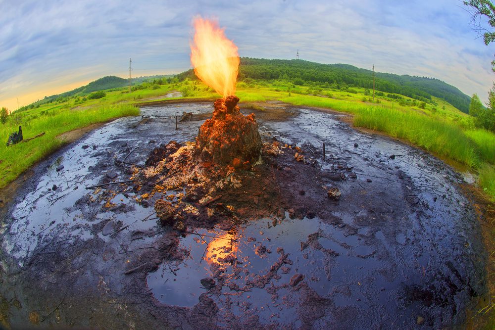 Ще однією особливістю вулкана є те, що він дихає вогнем. Та це не кратер, а залишок газової труби. Мешканці підпалили її, аби місцевість не стала надто загазованою. Так, вже протягом 30 років тут діє свій “вічний вогонь”, котрий не гасне за будь-якої погоди. Слід бути обачним коло вулканів, щоб не потрапити під струмінь гарячої води чи нафти.