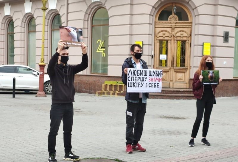 Люди стояли на одній із центральних вулиць міста із такими плакатами: «Любиш шуби, спершу зніми шкіру з себе», «Смачно їм 11 років без м’яса», «Тварини – наші друзі», «Кожна тварина заслуговує на життя.