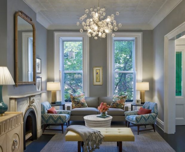- Визначтесь з розміром люстр, враховуйте параметри приміщення. Наприклад, якщо ваша кімната вузька, тоді люстри витягнутої форми ідеально впишуться в оформлення.